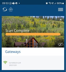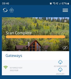 - Når skanningen er fullført, klikk på skyikonet (OTA) for å starte programvareoppdatering for gatewayen.