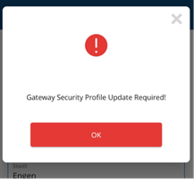 Under registreringen kan du få meldingen: “Gateway Security Profile Update Required”.