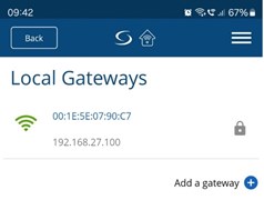 - Sørg for at mobilenheten din er koblet til det samme lokale nettverket som gatewayen (gateway og mobil må ha samme IP-adresseområde). Vent til gatewayen lyser grønt (eller blått).